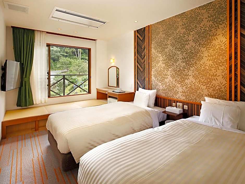 Bereid je voor op een gratis ontbijt elke ochtend, zodat je goed begint aan een dag vol avontuur. Het hotel beschikt over een scala aan heerlijke voorzieningen om je verblijf te verhogen, waaronder een uitnodigend buitenzwembad, een rustgevende onsen (hete bron) en een serene spa — al deze faciliteiten zijn gratis te gebruiken! Stel je voor dat je geniet van heerlijke lokale gerechten in het restaurant, of ontspant temidden van het weelderige tuinzicht dat je ziel betovert en je geest tot rust brengt.