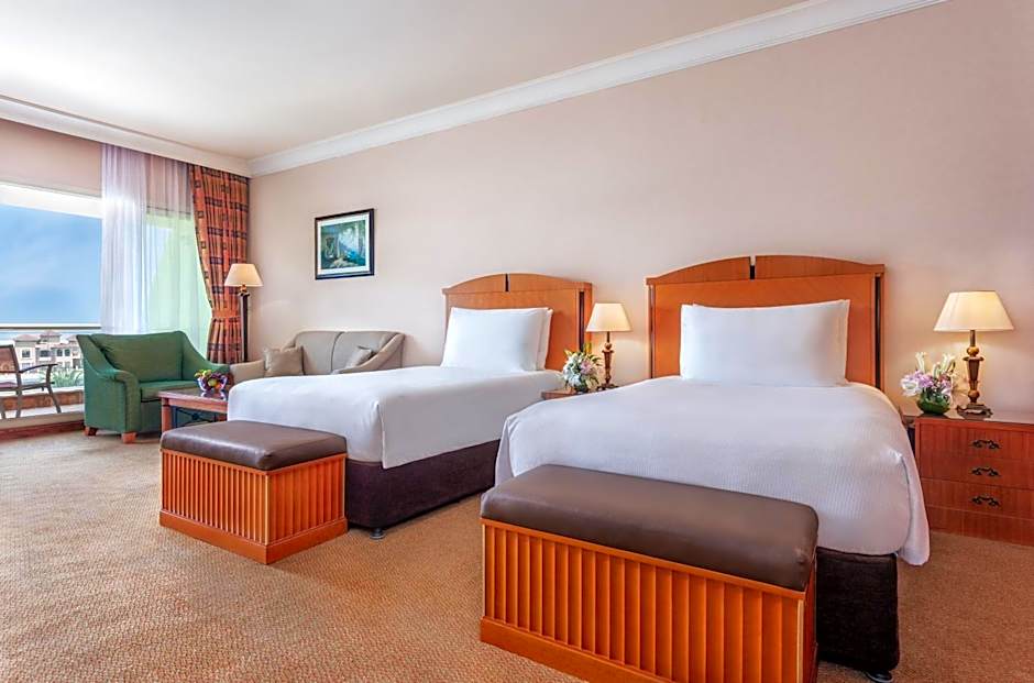 Het dineren ter plaatse bestrijkt diverse smaken en sferen: Sevilla biedt internationale gerechten in een gezinsvriendelijke, moderne omgeving; Azur serveert mediterrane gerechten met een romantische toets; Café Mozart geeft een eigentijdse draai aan internationale gerechten; La Piscine biedt informele internationale hapjes in een gastvrije, gezinsvriendelijke sfeer; Wanasah presenteert Midden-Oosterse en Aziatische smaken met een traditionele inslag, terwijl Al Manzil het modern houdt met internationale opties. Het is eenvoudig om maaltijden te mixen en matchen tussen de uitzichten aan het strand en de levendige lounges, waardoor elke maaltijd een klein nieuw avontuur wordt.