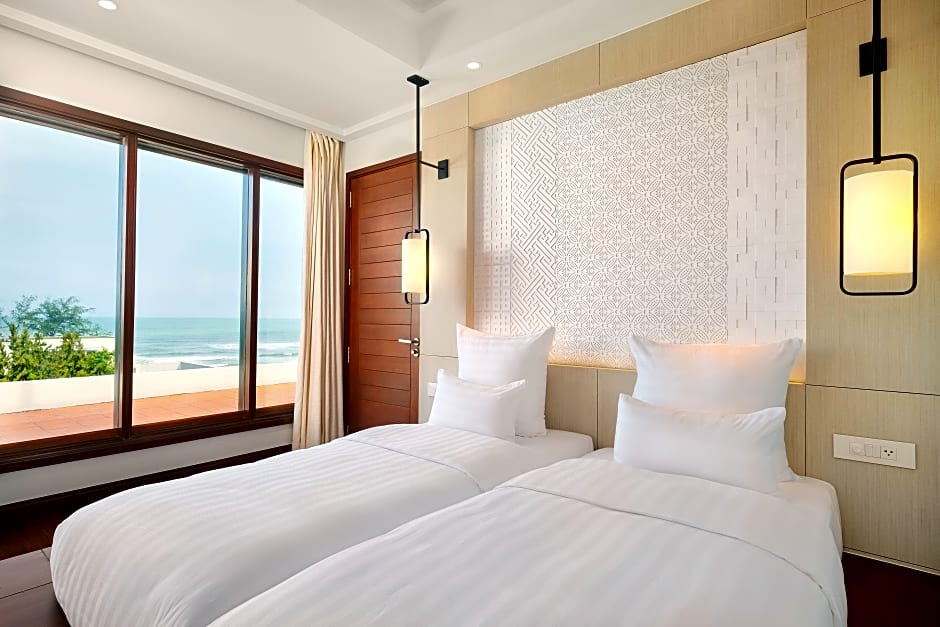 Bij Pullman Danang Beach Resort kunnen gasten kiezen uit verschillende weelderige kamertypes die bij hun voorkeuren passen. Het resort beschikt over Deluxe kamers, met moderne voorzieningen en stijlvolle inrichting voor een comfortabel verblijf. Voor wie op zoek is naar iets meer ruimte en luxe, bieden de suites een ruimere opzet met aparte woongedeeltes en een adembenemend uitzicht op het strand. Elke kamer is prachtig ontworpen om een rustige omgeving te bieden waar gasten kunnen ontspannen en zich kunnen opladen na een dag de stad te verkennen.