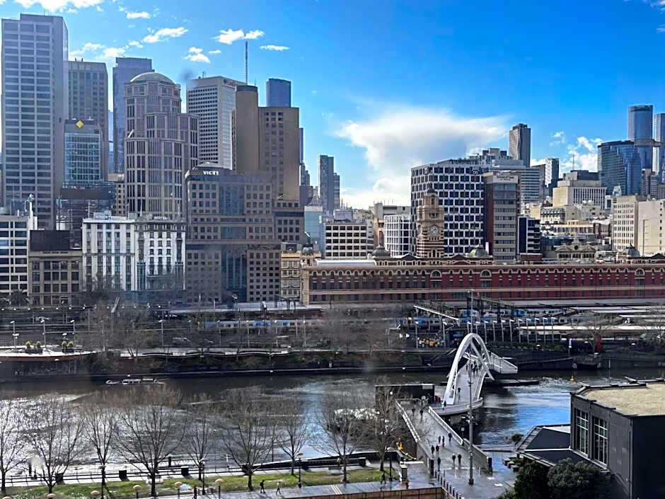 Beliggende langs Riverside Quay holder denne basen i Melbourne reisende nær byens puls, samtidig som den byr på en bit av elvebreddens sjarm. Matservering på stedet tilbys av Distrikt Press, en familievennlig restaurant som holder middagen enkel og trivelig. For avslapning finnes en strømmetjeneste, og Wi‑Fi er gratis, så det er lett å slappe av med en favorittserie etter en dag med utforsking.