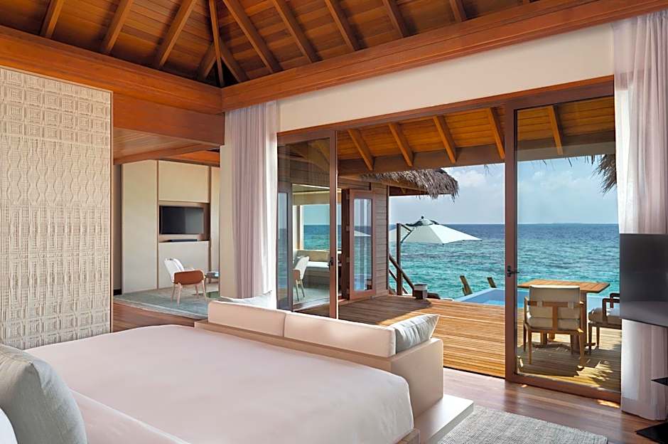 For de som ønsker å slappe av enda mer, tilbyr resortets utendørs infinitybasseng kun for voksne et fantastisk sted å hvile mens du nyter panoramautsikt over havet. Med en grunndel å plaske i og en rolig atmosfære er det den perfekte flukten for en stille ettermiddag. Ved siden av bassenget gir den frodige hagen og den nærliggende stranden et levende naturlandskap som utfyller din rolige tilflukt. Ta en forfriskende cocktail fra baren ved bassenget og senk deg ned i ren maldivisk lykke.