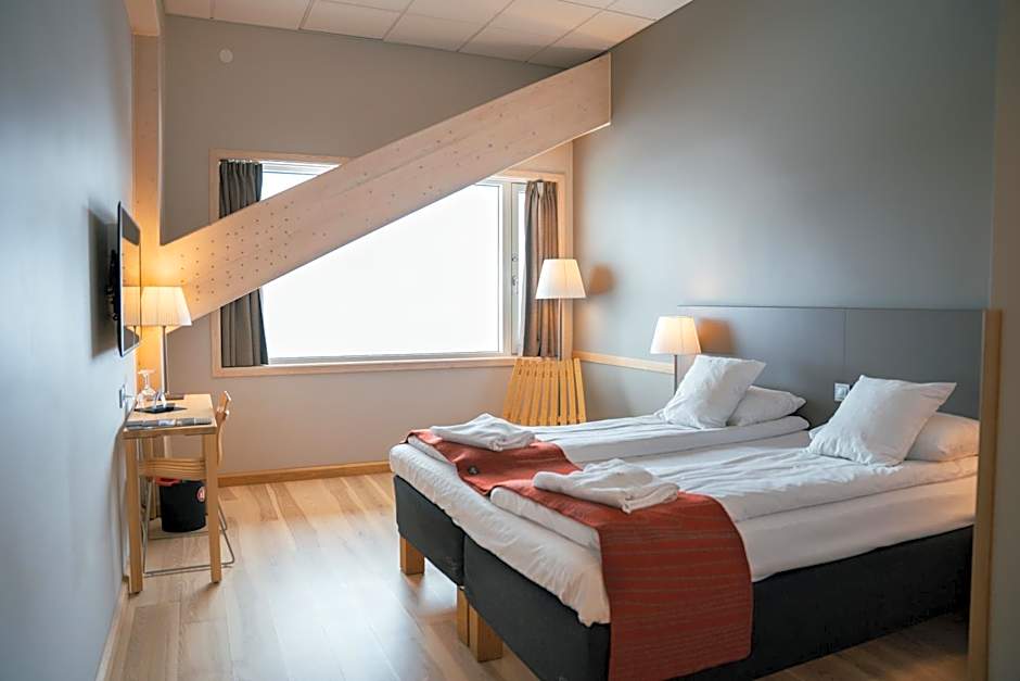 The hotel's on-site restaurant, Restaurant Mjøskanten, offers a modern ambiance and serves local cuisine, allowing guests to experience the flavors of the region without having to leave the hotel.