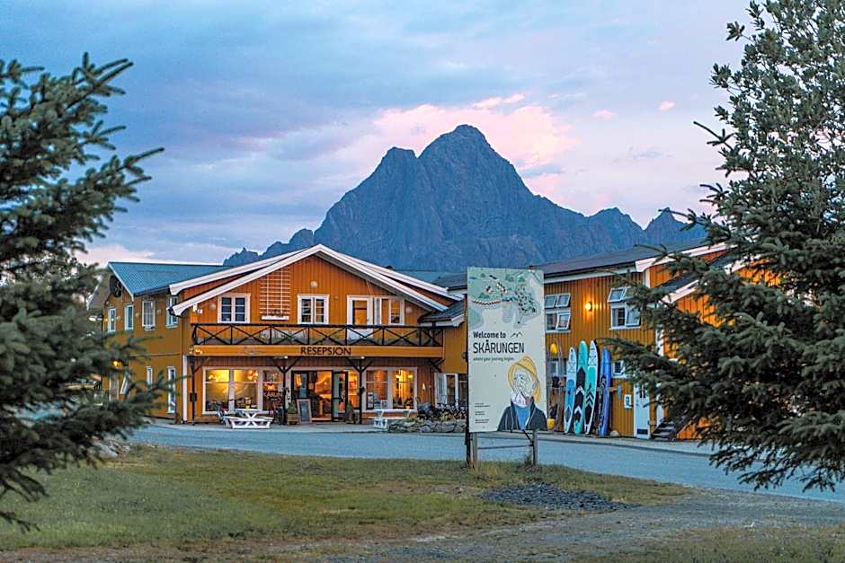 Skårungen - Hotel, Cabins and Camping in Kabelvåg, Norway, is a 3-star getaway located about 1.3公里 from the city center. Address: Ørsvågveien 40. This beachfront retreat offers private beach area (free) and scenic views of the mountains and garden, with a terrace or balcony for al fresco moments. Highlights include free Wifi, free on-site parking, non-smoking rooms, and kitchen facilities, plus kid-friendly touches for family stays.