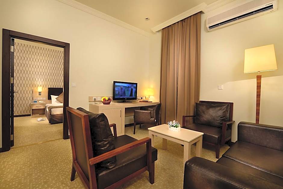 This modern, air-conditioned suite offers a living room with sofa, a TV and a fridge. The bathroom includes a shower, a hairdryer and bathrobe.