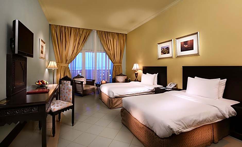 offers a sun-kissed pool scene with an outdoor pool available year-round. For dining, Dhow Restaurant serves American and Asian flavors, while a bar invites relaxed drinks as the sea breeze rolls in.