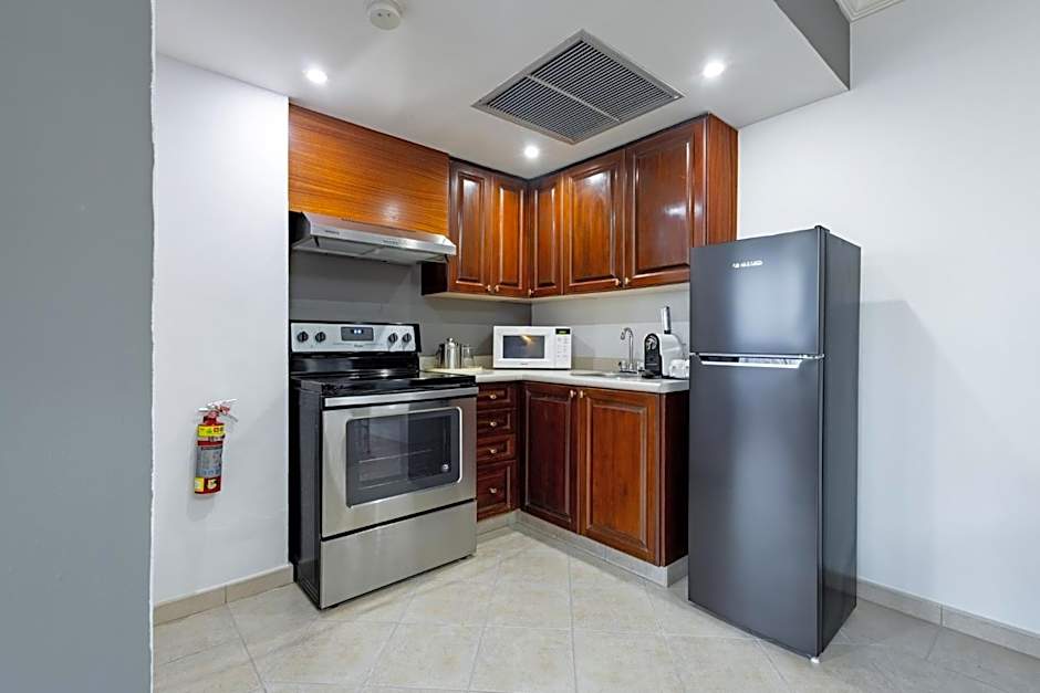 Offering free toiletries, this suite includes a private bathroom with a shower and a hairdryer. The suite's kitchenette, which features kitchenware and a microwave, is available for cooking and storing food. The spacious air-conditioned suite offers a flat-screen TV with cable channels, a mini-bar, a tea and coffee maker, a seating area as well as city views. The unit offers 1 bed.