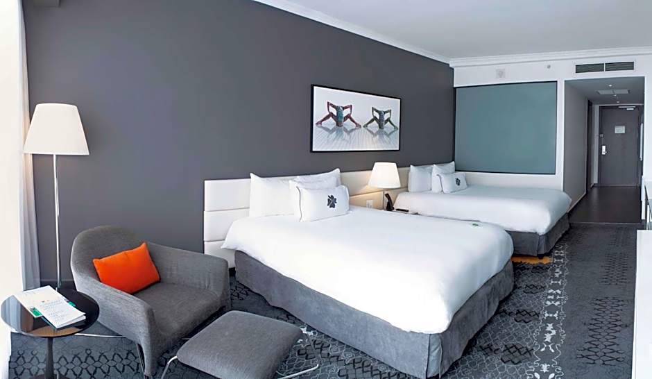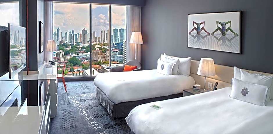 Two outdoor pools with sweeping views invite travelers to unwind after a day wandering Panama City. On-site dining covers a range of moods, from Restaurante La Brasserie, offering International fare in family-friendly, traditional, modern, and romantic settings, to Sortis Market for casual, family-friendly meals; Jackies Sport Bar brings a modern American vibe, and Acua Pool & Lounge serves American bites by the water.