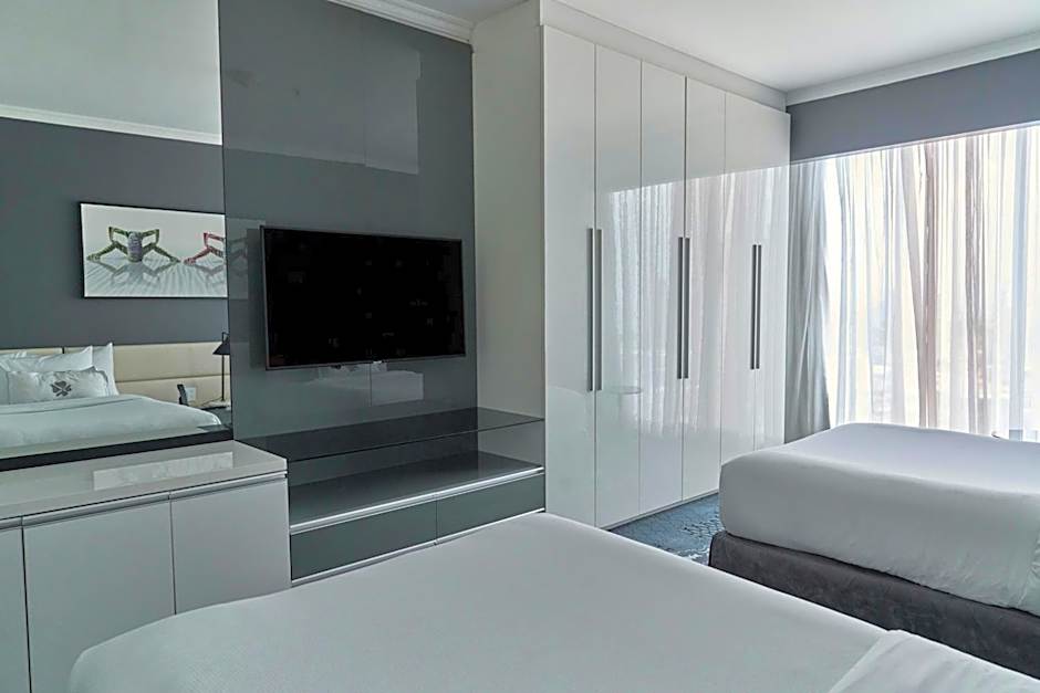 The spacious suite has 1 bedroom and 1 bathroom with a shower and free toiletries. The air-conditioned suite features a flat-screen TV with cable channels, soundproof walls, a seating area, a wardrobe as well as pool views. The unit has 2 beds.