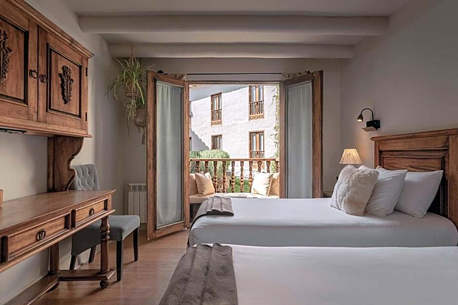 This triple room features a king-size bed, a spacious private bathroom with a heated towel rack, a seating area and a balcony. The room overlooks the gardens. The room is also fitted with a 43" flat-screen TV and a safety-deposit box. These rooms may be located in the original 'casona' part of the property, or in the new area of the property.