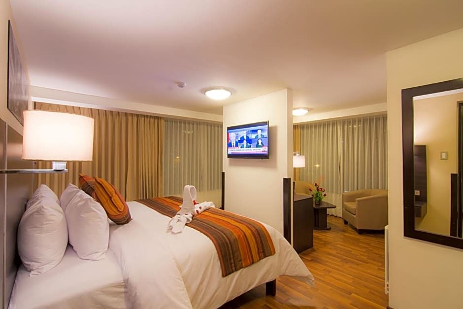 Address: Av. 28 De Julio M2-1 Urb. Ttio, Cusco, Peru. A diverse slate of rooms awaits, from the compact Standard Single (about 161 sq ft) to the Family room (about 280 sq ft), with Junior Suite (248 sq ft) and King Room among the options. Beds vary across layouts: Standard Single offers a Twin bed, Standard Queen features a Queen, Standard 2 Queen comes with two Queens, Junior Suite has a Queen, Family combines two Twin beds with a Double bed, and the King Room provides a King bed.
