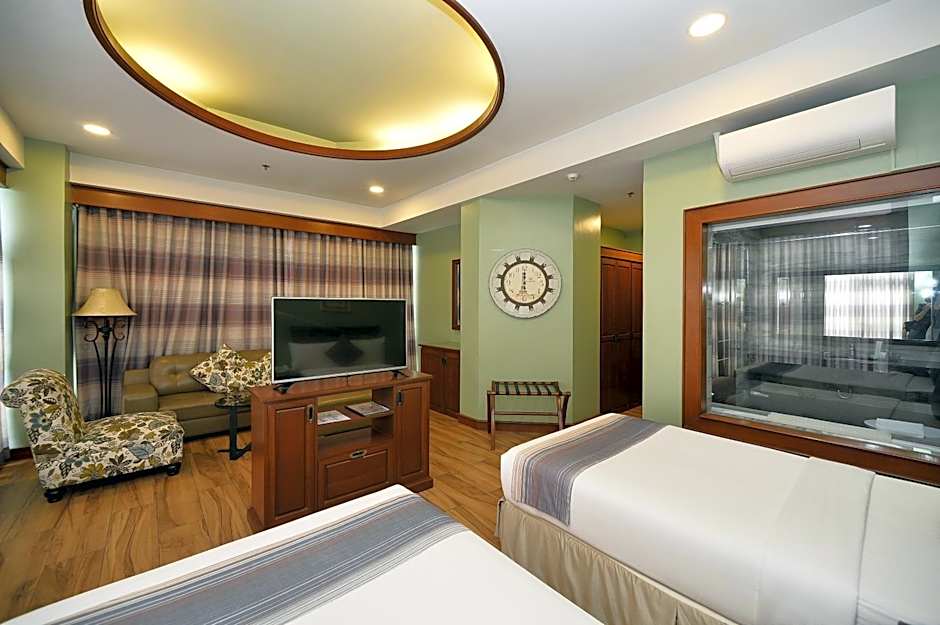 This spacious suite is consisted of of 1 living room, 1 separate bedroom and 2 bathrooms with a bath and free toiletries. A kitchenette equipped with a refrigerator, a microwave and an electric kettle is available for cooking and storing food. The air-conditioned suite offers a flat-screen TV, a seating area, a dining area, a wardrobe as well as city views. The unit offers 4 beds.