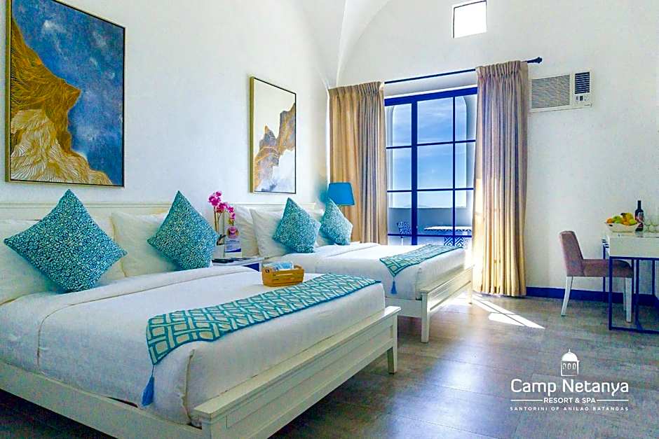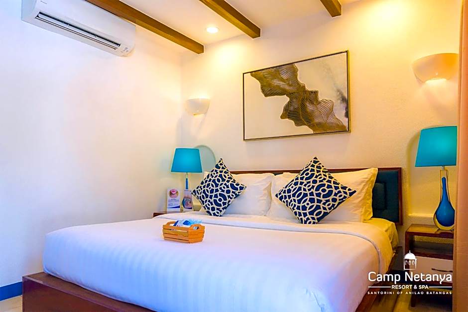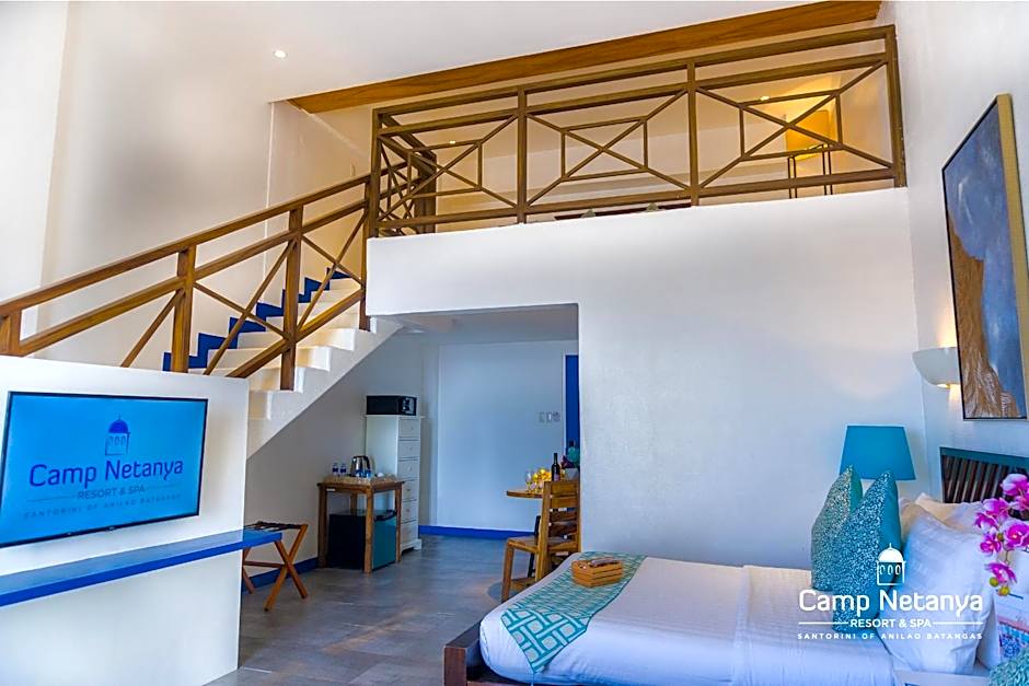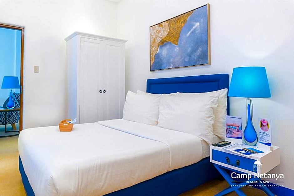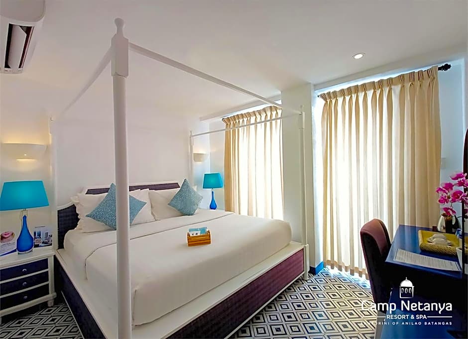 This suite features a Santorini-inspired decor. Suite includes a King-sized bed, a flat-screen cable TV, mini-bar and private bathroom. Additional benefits: - 1 hour kayaking and 1 hour snorkeling (with free gears and accessories)