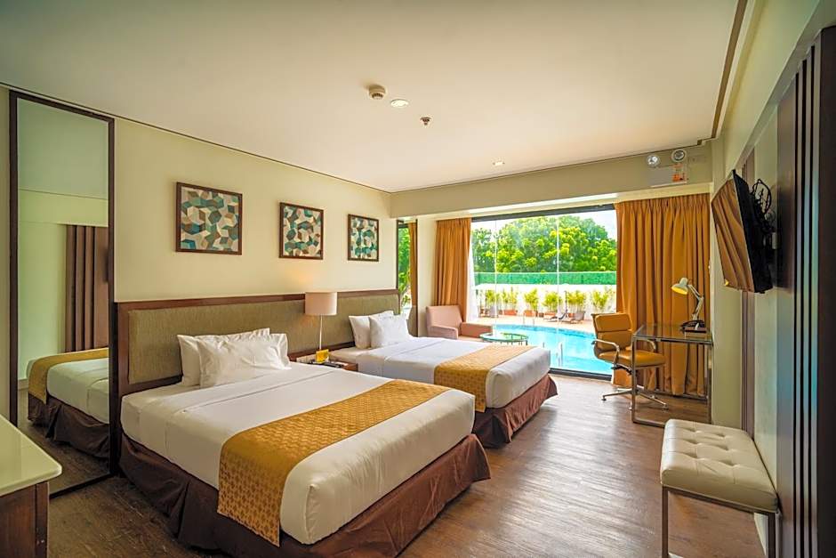 The pool with a view is a top feature of this twin room. Offering free toiletries, this twin room includes a private bathroom with a bath, a shower and a bidet. The air-conditioned twin room offers a flat-screen TV with cable channels, a mini-bar, a tea and coffee maker, a seating area as well as city views. The unit has 2 beds.