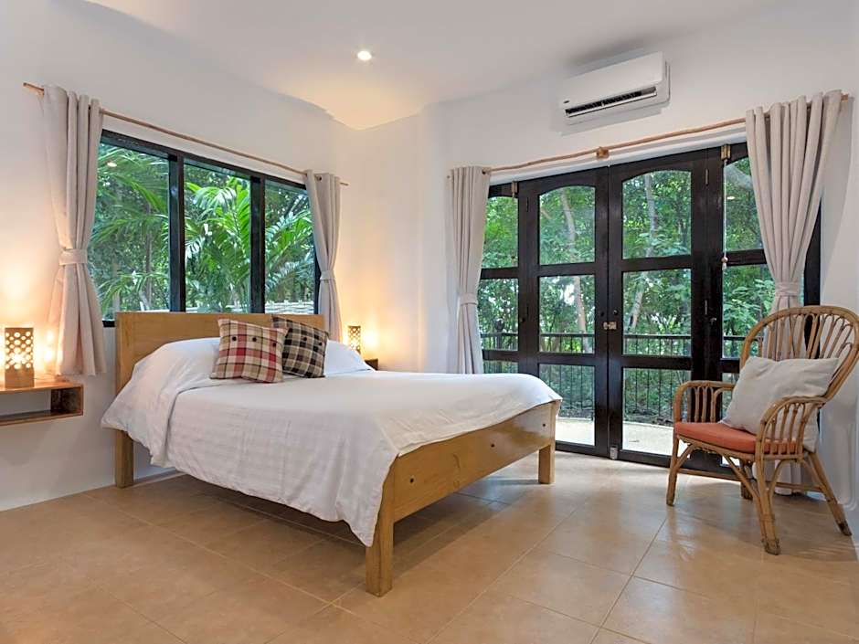 This air-conditioned room opens up to views of the swimming pool and garden. It features a private balcony for your comfort. The room is fitted with a custom queen-sized hardwood bed. The private bathroom is equipped with shower facilities.