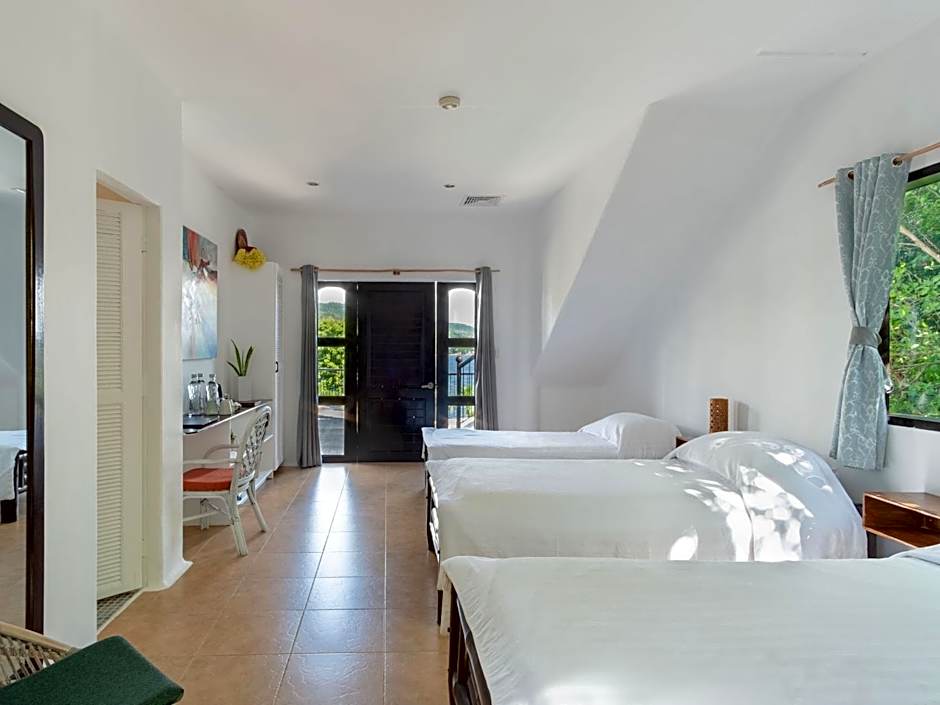 Featuring a private balcony with views of the garden, this room comes with 3 bamboo single beds. The main entrance provides views of the ocean and pool area. The private bathroom offers shower facility.