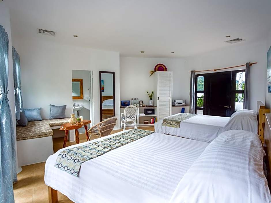 Featuring a private balcony with views of the garden, this large family room comes with 2 queen-sized beds. The main entrance provides views of the ocean and pool area. The private bathroom offers shower facility and free toiletries.