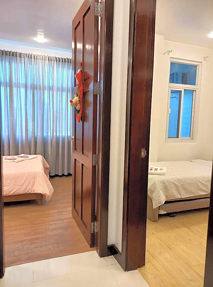 Three room options cater to different needs: Apartment, 2 Bedroom accommodates up to 4 adults with 1 double bed and 2 twin beds; Double, Triple, Private Bathroom accommodates up to 3 adults with 1 twin bed and 1 double bed; Double Room, Private Bathroom accommodates up to 2 adults with 1 double bed.