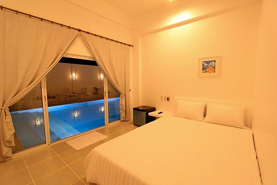 The Bluewave Hotel offers Standard Double Rooms with Pool View. These rooms are non-smoking and have a bed size of Queen. They can accommodate 2 adults and 1 child, with a room size of 140 sqft.