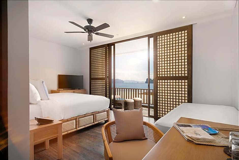 Located right in front of Miniloc’s white sand beach, the beachside room includes a daybed.
