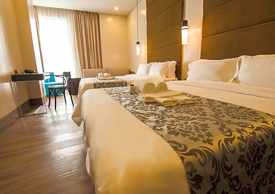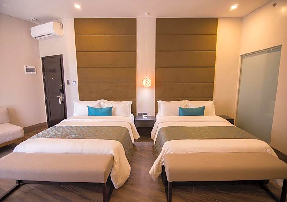 Goldberry Lite Hotel offers a variety of rooms including Deluxe Double Rooms with 2 Queen beds and 1 Double bed, Standard Double Rooms with 2 Twin beds and 1 Double bed, Studios with a Double bed, and Suites with 2 Queen beds. Smoking is not allowed in any of the rooms. Each room accommodates 2 adults with no children.