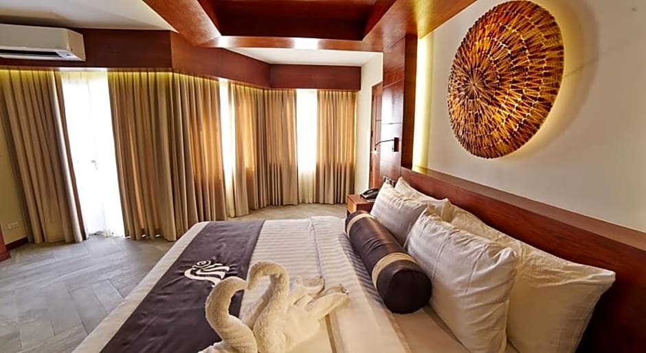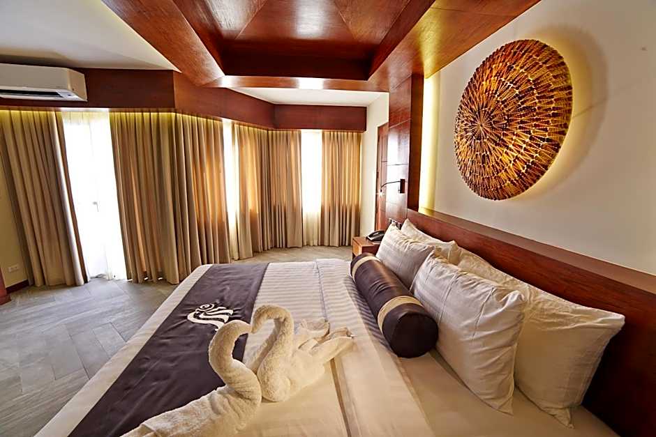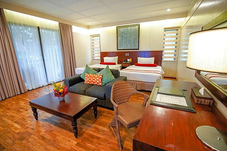 Set atop the Mabuhay building by the poolside, these rooms feature views of the resort from the private balcony. Each air-conditioned room is elegantly furnished with a 40-inch flat-screen TV, mini-bar, complimentary tea/coffee making amenities and bottled drinking water. The private bathroom includes bathrobes, slippers and hot/cold shower facility.