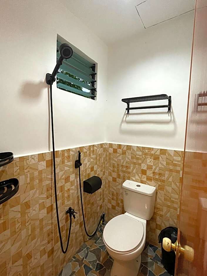 his bamboo cottage features a fan-cooled room (non-airconditioned) with a toilet and shower located outside the room, approximately 10 steps away.