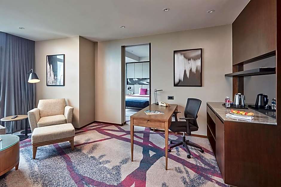 This suite's standout feature is the hot tub. Offering free toiletries and bathrobes, this suite includes a private bathroom with a bath, a shower and a bidet. The spacious air-conditioned suite offers a flat-screen TV with cable channels, a mini-bar, a tea and coffee maker, executive lounge access as well as city views. The unit offers 1 bed.