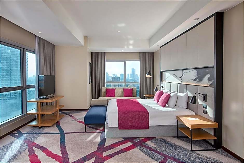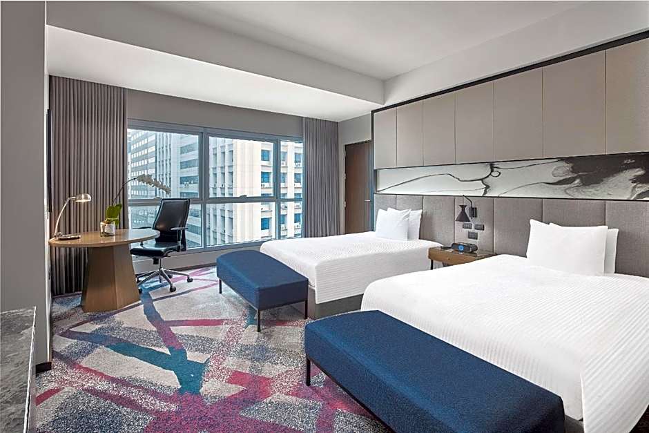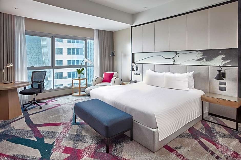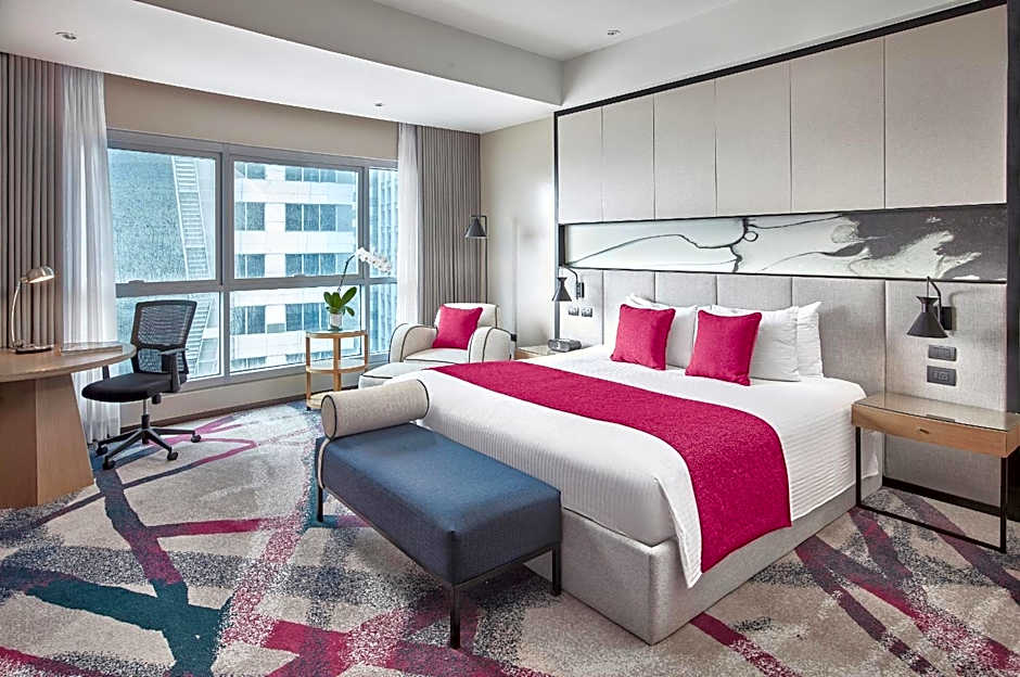 Newly renovated room, featuring floor to ceiling windows, this contemporary 40 sqm room offers free high-speed internet, a king-sized bed and a large work desk. It has a 42-inch LED TV and a mini-bar. Guests enjoy city view. The private bathroom offers separate bathtub and shower facilities.