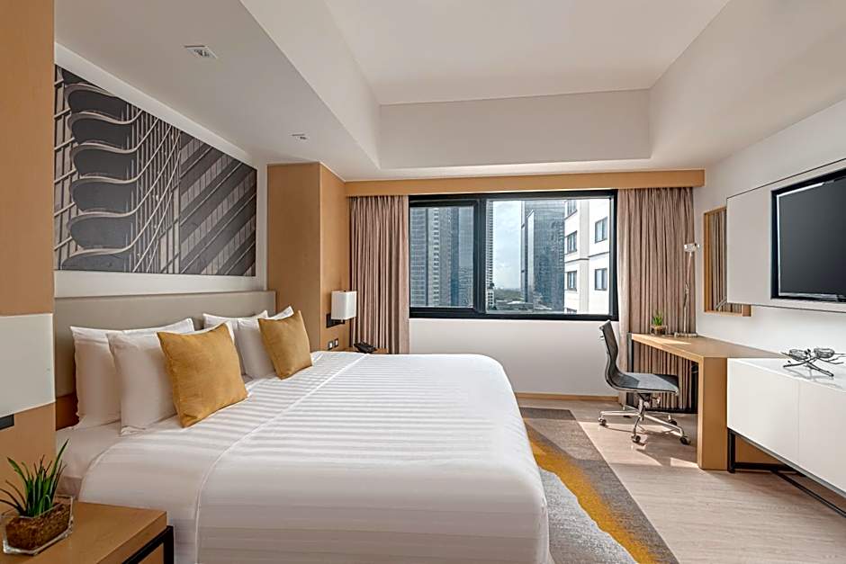 This room features the same amenities as Deluxe Room but with Executive Club Lounge privileges. The room offers 1 king-sized bed or 2 single beds, 40" LED TV, media panel with HDMI, USB, and A/V connectivity, phone with iPod dock and FM stereo feature, iron and ironing board, and coffee and tea making facilities. Bathroom has hot and cold shower.