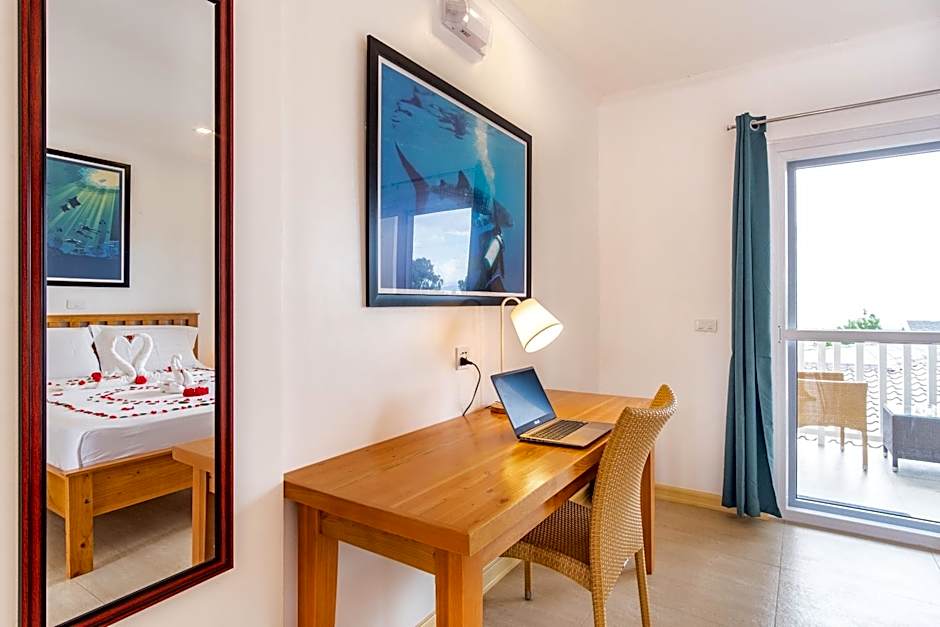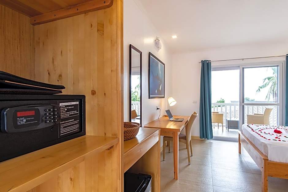 Room choices include Deluxe, Twin, Sea View (accommodates 2 adults, 0 children) with a Twin bed; Twin Room, Terrace (2 adults, 0 children) with a Twin bed; Deluxe, Balcony (2 adults, 1 child); Room - 2 Bed, Terrace (2 adults, 1 child); Deluxe, Sea View, Balcony (2 adults, 1 child); Deluxe, 2 Bed, Sea View (2 adults, 1 child); and King Room, Sea View (2 adults, 1 child) with a King bed. All spaces are non-smoking. A private entrance, balcony or terrace, beach chairs and umbrellas, and free toiletries are included, along with private parking, Wi-Fi, and air conditioning. Only cash is accepted.