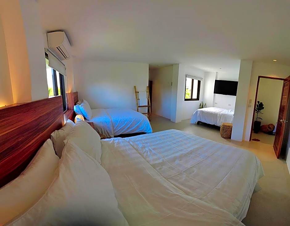 This air-conditioned quadruple room features a desk, a balcony, garden views and a private bathroom. The unit offers 2 beds.