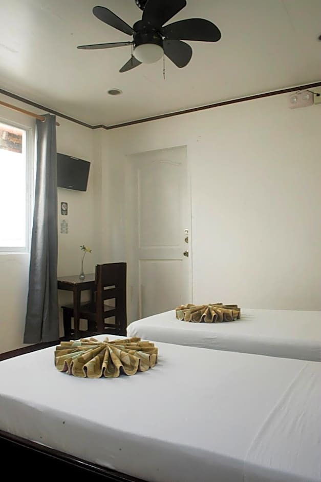A simple, air-conditioned room with a double bed and a set of bunk beds. It also comes with cable TV, a lockable cabinet and a private tiled bathroom with hot and cold shower.