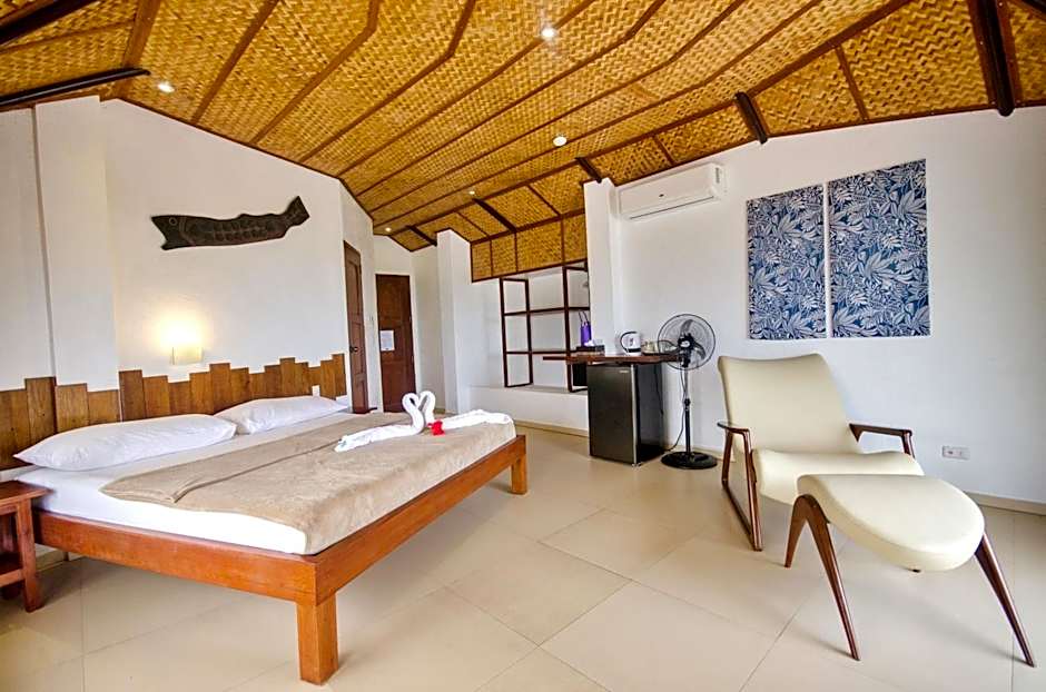 This airconditioned bungalow offers an Ocean view of Bulabog bay; Features a private porch and comes with a kitchenette for guests' convenience. It is equipped with a fan, a comfortable living area and hot shower facilities. only accessible via stairs (approx. 90 steps)