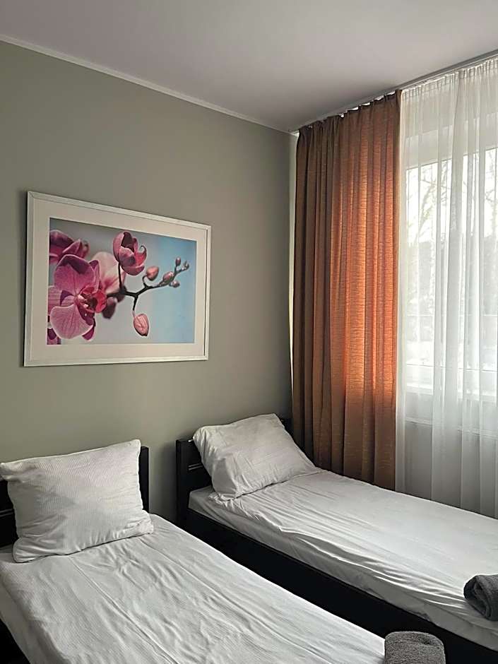 The studio consists of two spacious rooms, a bathroom and a separate hall. Each room has a flat-screen TV approximately 50 inches in size. The studio can accommodate up to 10 people. Through separate rooms, the studio can be used by families with children or groups.