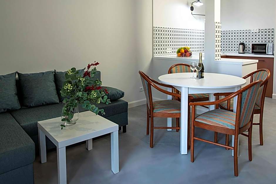 A diverse lineup of accommodations caters to different travelers, from a Studio (323 sqft) with two twin beds to a Standard Apartment (431 sqft) for two adults and a child, featuring two twin beds plus a sofa bed. There are also a Deluxe Apartment (538 sqft) with a sofa bed and two twin beds, and a Superior Apartment (484 sqft) offering two twin beds plus a sofa bed. A Studio with Terrace is also available, adding outdoor charm to the options.