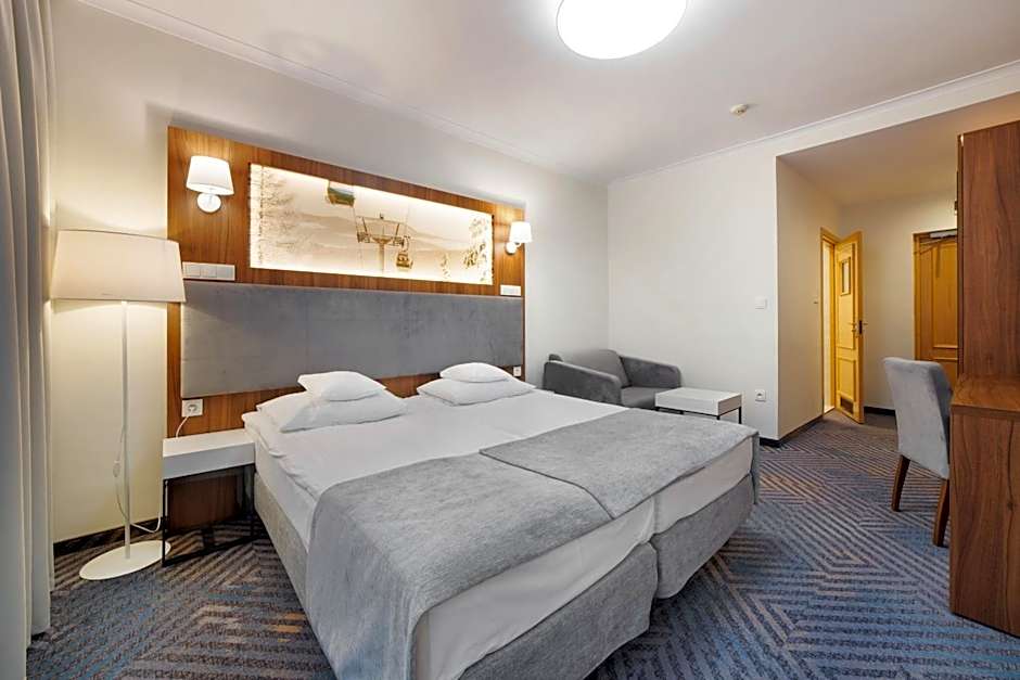 Pegaz hotel offers Double Rooms with Mountain View, which are non-smoking rooms that can accommodate 2 adults and 1 child. These rooms feature twin beds and a sofa bed, with a room size of 172 sqft.