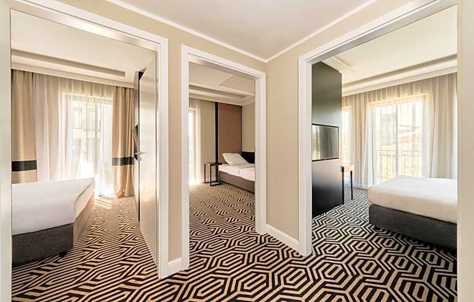 Choose from a variety of spacious and comfortable room types at Baltic Park Fort by Zdrojowa. Whether you're traveling with family or friends, there is an option to accommodate everyone. The Two-Bedroom Suite offers 753 sqft of space and can accommodate up to 6 adults. With a sofa bed and two queen-size beds, you'll have plenty of room to relax and unwind. If you prefer an apartment-style accommodation, the Deluxe Apartment, Deluxe Apartment with Hot Tub, and Apartment with Side Sea View are perfect choices. These options provide ample space for 4 adults and 2 children, with amenities such as a queen-size bed and a sofa bed. With a range of room options and sizes, you can find the perfect home away from home for your stay at Baltic Park Fort by Zdrojowa.