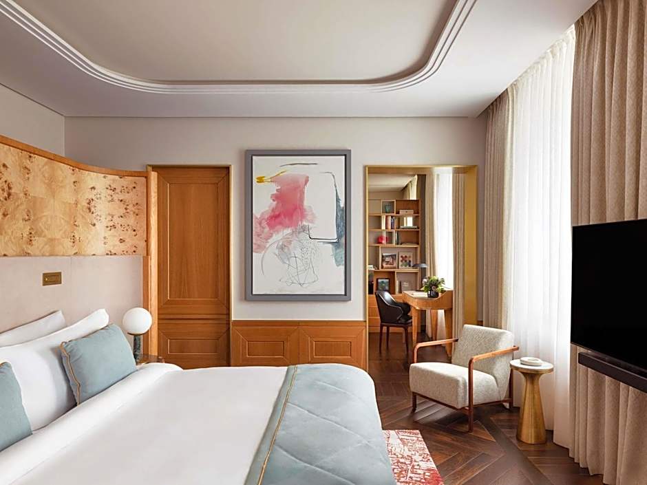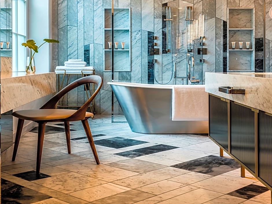 Featuring Polish contemporary art, this most spacious suite includes a large living room with modern amenities and a master bedroom with custom-made linen and down bedding. Guests can enjoy complimentary mini-bar soft drinks and complimentary special welcome amenity. The marble bathroom comes with Blaize Mautin toiletries.
