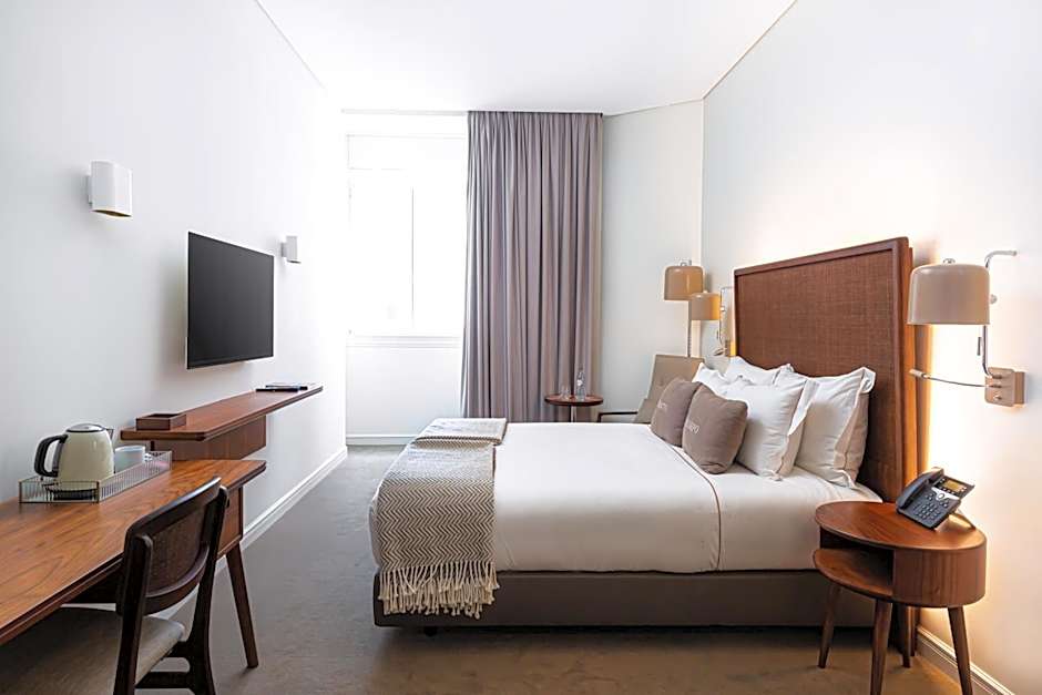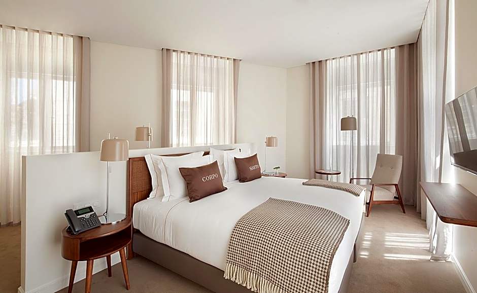 This large and bright room is equipped with comfortable feather duvets, bathroom with Molton Brown amenities, bathtub with chromotherapy, professional hair dryer and a hair straightener. It has a view over the Corpo Santo square or Travessa do Cotovelo. Some rooms come with a desk.
