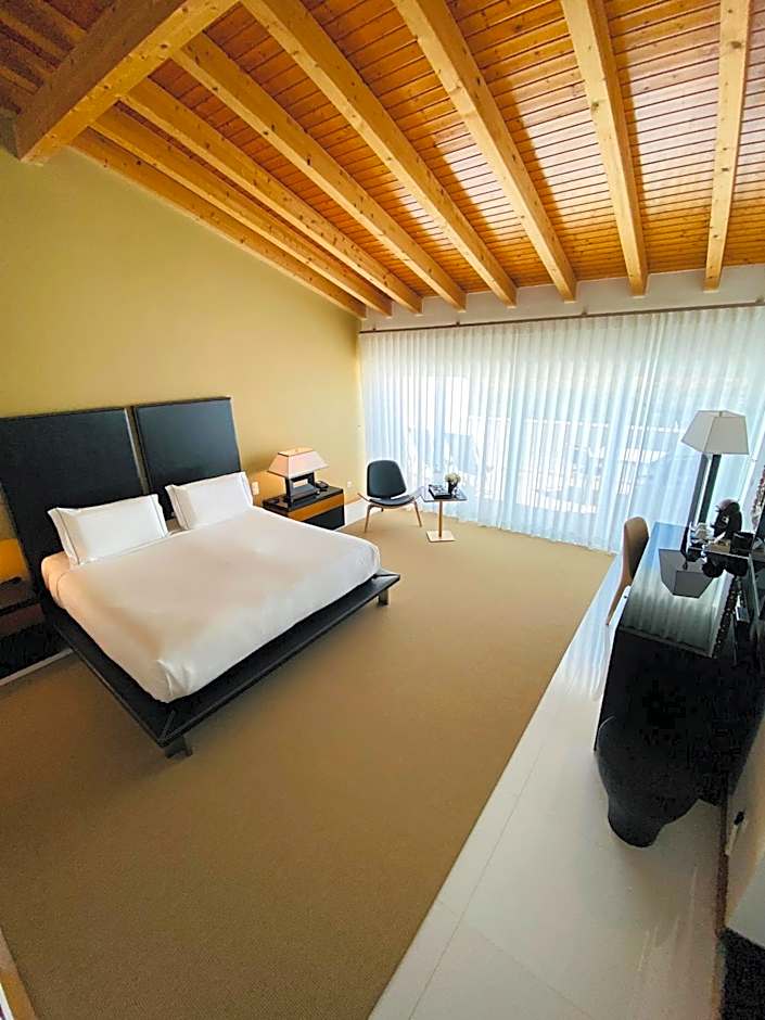 The Vila Valverde Design Country Hotel offers three types of rooms: Deluxe Rooms, Superior Double Rooms, and Double Rooms. All rooms have a double occupancy and do not allow smoking. The room sizes range from 312 sqft to 592 sqft, and each room is equipped with a king-size bed.