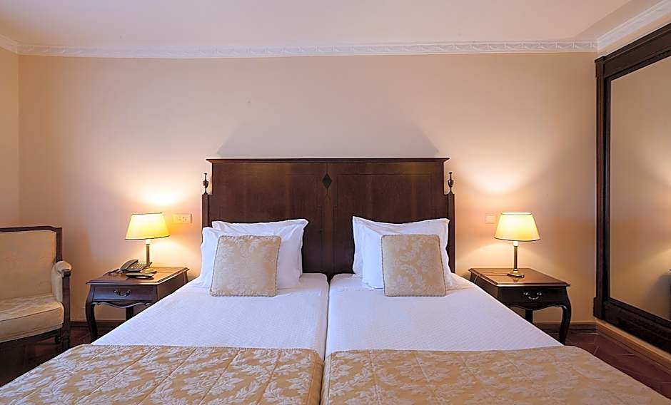 The Hotel Club d'Azeitao offers Standard and Superior rooms with options for single occupancy, 2 beds, double or twin beds, accommodating 2 adults and 1 child. Smoking is not allowed in any of the rooms. Bed sizes vary between double and twin beds, and room sizes range from approximately 258 to 420 square feet.