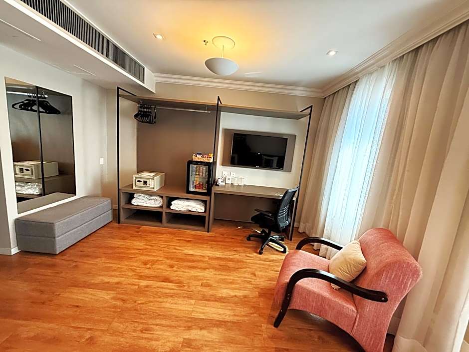As opções de quarto abrangem uma ampla variedade, incluindo Deluxe, Queen; Premier Double Room; Superior, Single Use; Deluxe Premier; e Suite Premium, Queen. Essas opções mostram a versatilidade da propriedade para diferentes necessidades de viagem, desde viagens individuais até pequenos grupos.
