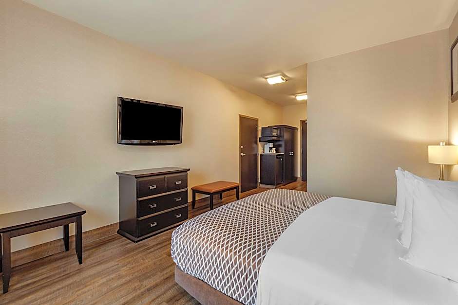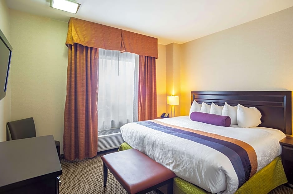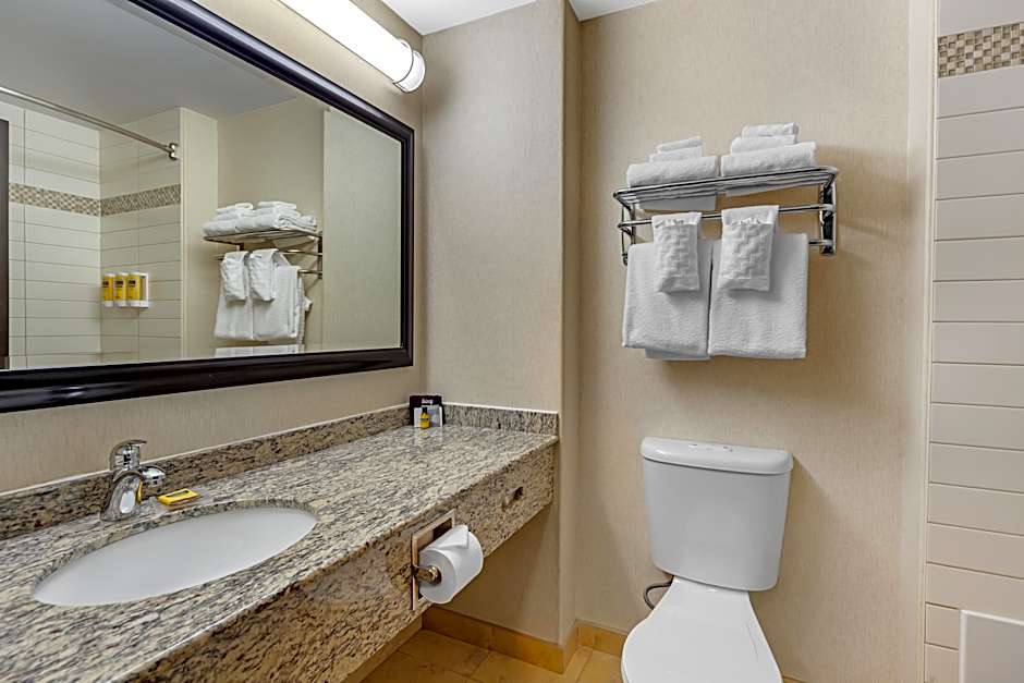 Depois de um dia explorando St. Albert, mergulhe numa piscina coberta de água salgada aberta o ano todo; depois, relaxe numa banheira de hidromassagem ou faça um treino no centro de fitness. Um passeio pelo jardim oferece um momento de tranquilidade, e um serviço de streaming (como a Netflix) proporciona lazer fácil quando necessário.