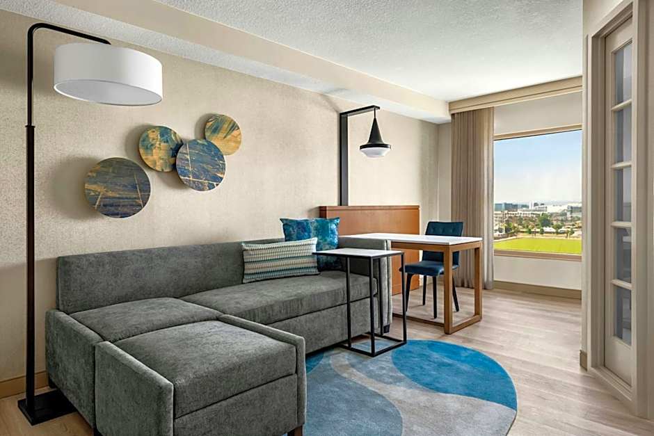 Anaheim, ensolarada e com clima de deserto, recebe os viajantes com um toque de estilo junto a uma piscina externa aquecida exclusiva para adultos, oferecendo um refúgio relaxante após um dia de passeios. As opções de alimentação no local incluem o Route 22, um restaurante americano familiar, além de um Starbucks para um rápido reforço de cafeína. Um deck ensolarado e espreguiçadeiras de praia gratuitas completam a atmosfera descontraída e pronta para férias.