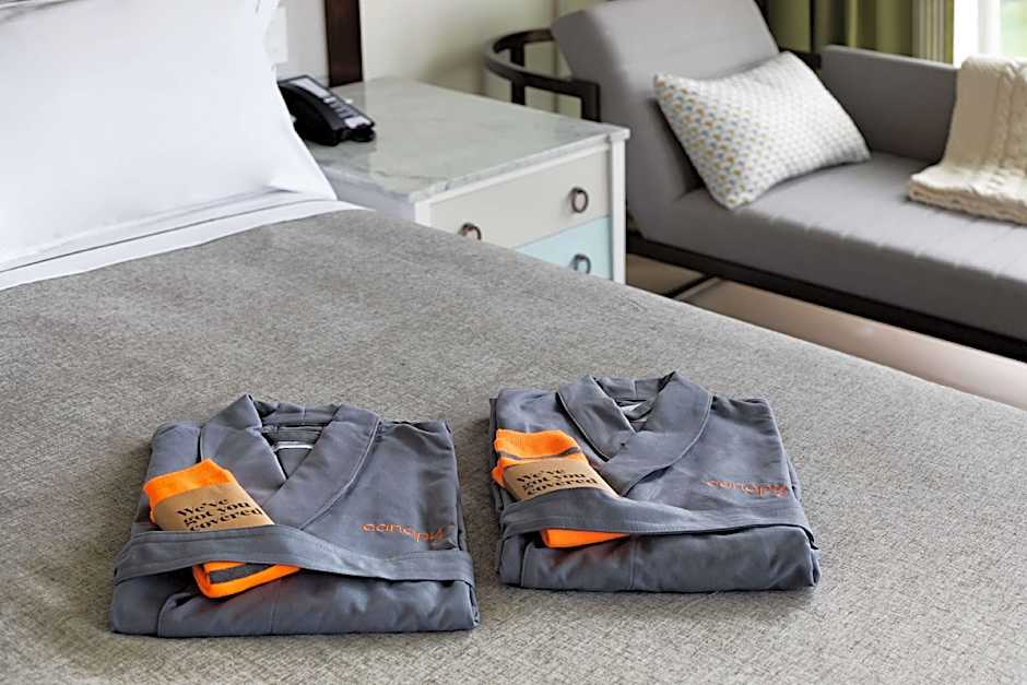 Agora vamos falar sobre os quartos. O Canopy By Hilton Charlotte SouthPark oferece várias acomodações confortáveis e elegantes para você escolher. Seja viajando sozinho ou em grupo, você encontrará o quarto perfeito para suas necessidades. Do acolhedor Premium King Room ao espaçoso Premium Queen Room com duas camas queen, há opções para todos. E com recursos luxuosos, como roupão macio, um sofá confortável e TV de tela plana, você poderá realmente relaxar e descansar em sua casa longe de casa. Então, por que esperar? Reserve sua estadia no Canopy By Hilton Charlotte SouthPark hoje e experimente uma experiência hoteleira verdadeiramente excepcional.