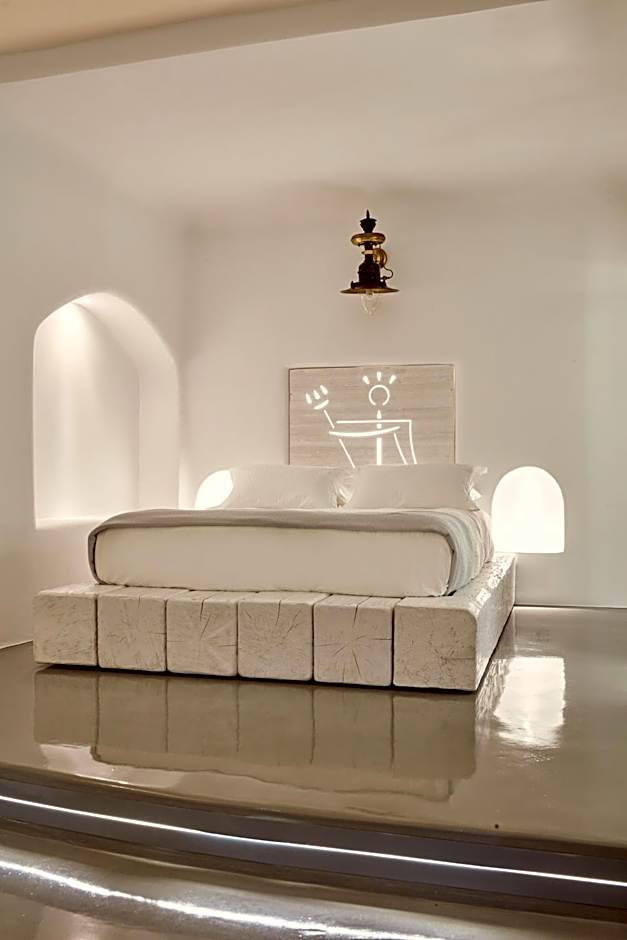 A restauração no local inclui um restaurante mediterrânico e um bar, com terraço, solário e varanda para apreciar as vistas com uma bebida na mão. As opções de quartos vão desde Suítes em Caverna a Deluxe e várias configurações Caldera ou com vista para o mar, com algumas suítes oferecendo toques especiais como uma piscina de imersão. Entre as opções notáveis estão a Honeymoon Suite com piscina de imersão e a Grand Suite com piscina de imersão ou banheira de hidromassagem, garantindo uma estadia memorável quer se celebre um romance quer se aprecie simplesmente a paisagem icónica de Santorini.