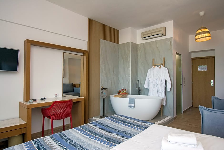 Em Yianna Caravel Suites "by Checkin" adults only, você pode escolher entre vários tipos de quartos para atender às suas necessidades e preferências. Seja viajando sozinho, em casal ou com a família e amigos, há uma opção para todos. Selecione entre quartos standard aconchegantes, quartos deluxe espaçosos com comodidades extras ou suítes luxuosas para uma experiência verdadeiramente indulgente durante sua estadia em Irákleion.