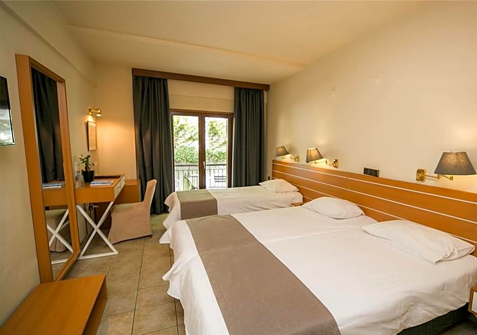 On-site pleasures include an outdoor pool tucked beside a terrace and sun deck, plus free parking and free Wi‑Fi for easy stays. The Main Restaurant - Κεντρικό Εστιατόριο offers Greek and Mediterranean dishes in a family-friendly, traditional ambience, with a welcoming bar for evening cuppas or nightcaps. Throughout the grounds, gardens, a picnic area, and beach chairs/loungers provide inviting spots to unwind and soak up the hillside atmosphere.