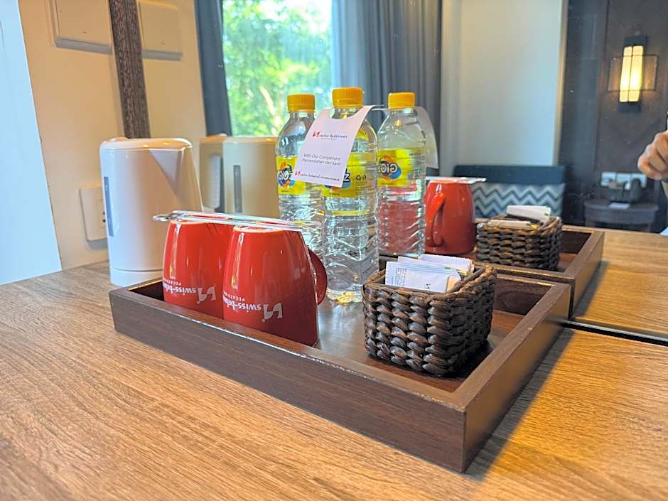 As opções de alimentação no local incluem o Pool Bar, que serve frutos do mar e pratos internacionais à beira da piscina, e o Swiss Cafe, que oferece sabores internacionais em um ambiente descontraído. Um bar nas proximidades fornece um local conveniente para relaxar com uma bebida, completando as experiências à beira da piscina e gastronômicas.