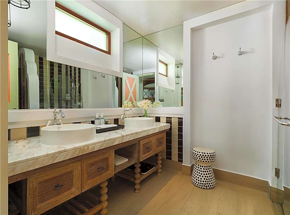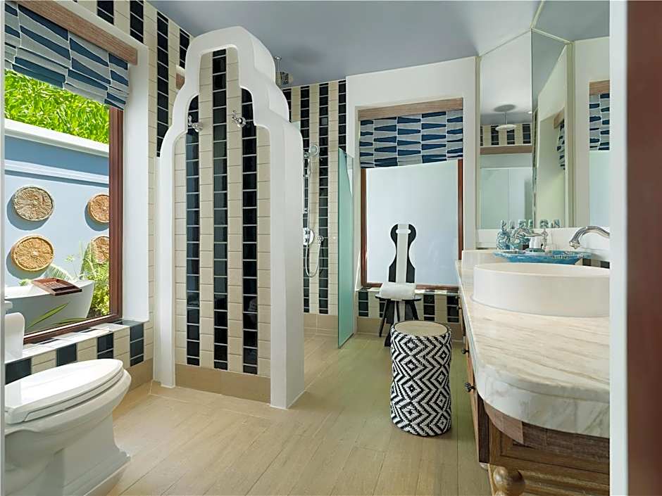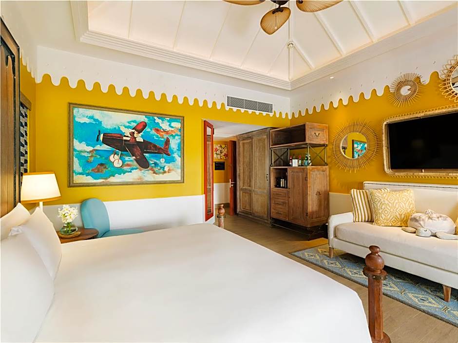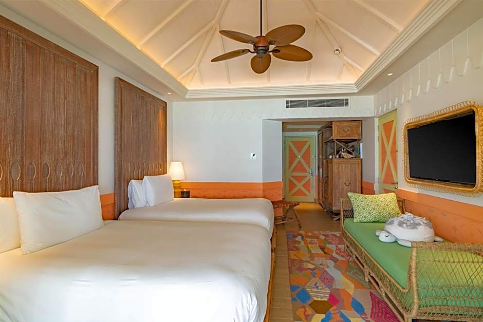 As acomodações variam de quartos íntimos com vista para a praia a amplas configurações familiares e vilas sobre a água. Um Family, 2 Bedroom, Beach View (947 sqft) acomoda até 8 adultos e 4 crianças, enquanto a romântica Villa Sky, Overwater, oferece um refúgio sereno para 2 adultos. Para encontros maiores, o Grand Villa (Beach/Pool View) e as Villa, 2 Bedroom, Private Pool comportam até 20 adultos e 13 crianças, transformando estadias de férias em escapadas memoráveis em múltiplos espaços.